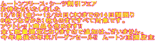 岩井ムートン、ムートン王国のバーゲン開催期間は